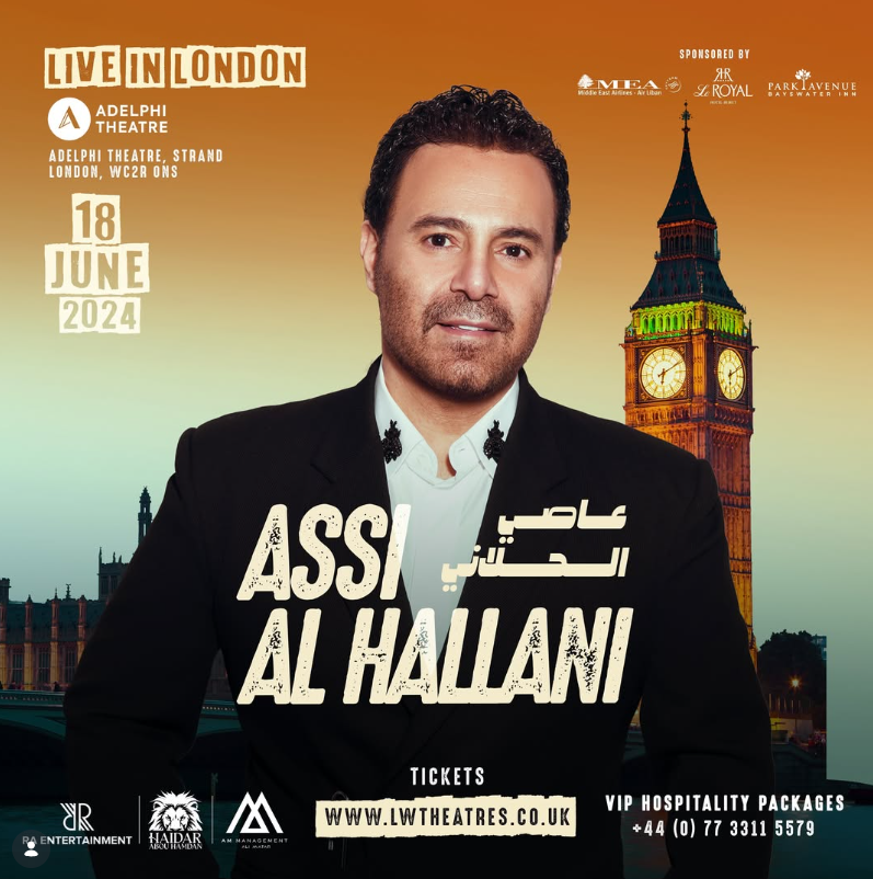 فارس الغناء العربي #عاصي_الحلاني في حفل من العمر يوم ١٨ يونيو/٢٠٢٤ على مسرح أديلفي! London, get ready to experience the legend! @assihallaniofficial takes the stage at Adelphi Theatre on June 18 for a night to remember!🔥