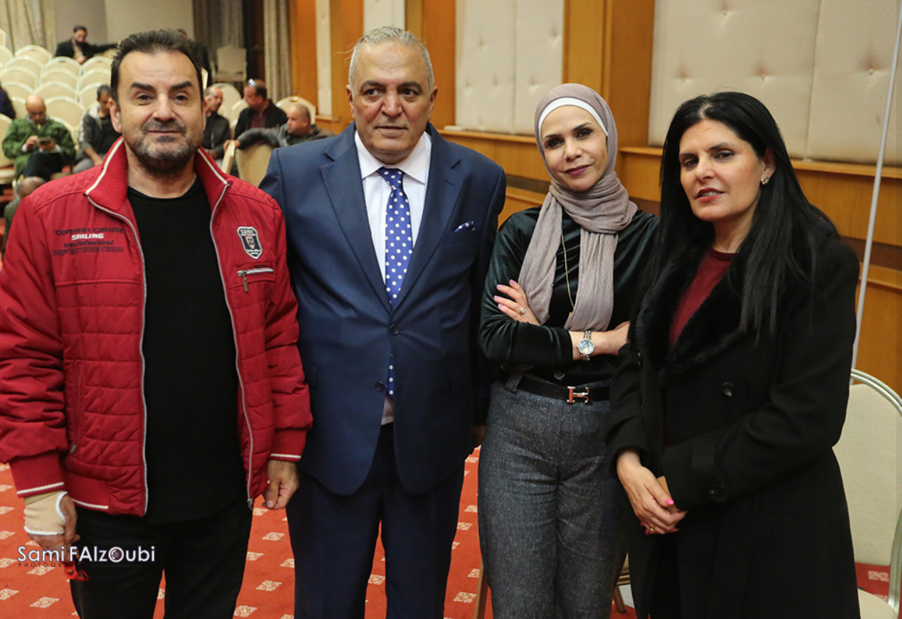 الفنان الدكتور نقيب الفنانيين الأردنيين هاني الجراح والفنان الدكتور علي الشرمان والفنانة عازفة الكمان مها النوتي والفنانة عازفة البيانو جانيت طاشمان خلال انتخابات نقابة الفنانيين
