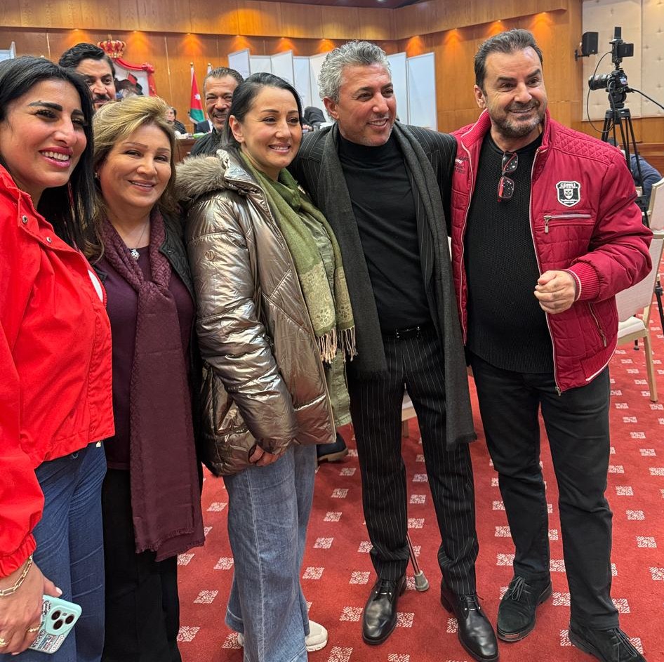من اليمين: الفنان الدكتور علي شرمان، الفنان صوت الاردن عمر العبداللات، الفنانة غادة عباسي، الفنانة امل الدباس، الفنانة الدكتورة رلى جرادات Super User الاخبار الرئيسية 31 آذار/مارس 2026 الزيارات: 6 من اليمين: الفنان الدكتور علي شرمان، الفنان صوت الاردن عمر العبداللات، الفنانة غادة عباسي، الفنانة امل الدباس، الفنانة الدكتورة رلى جرادات