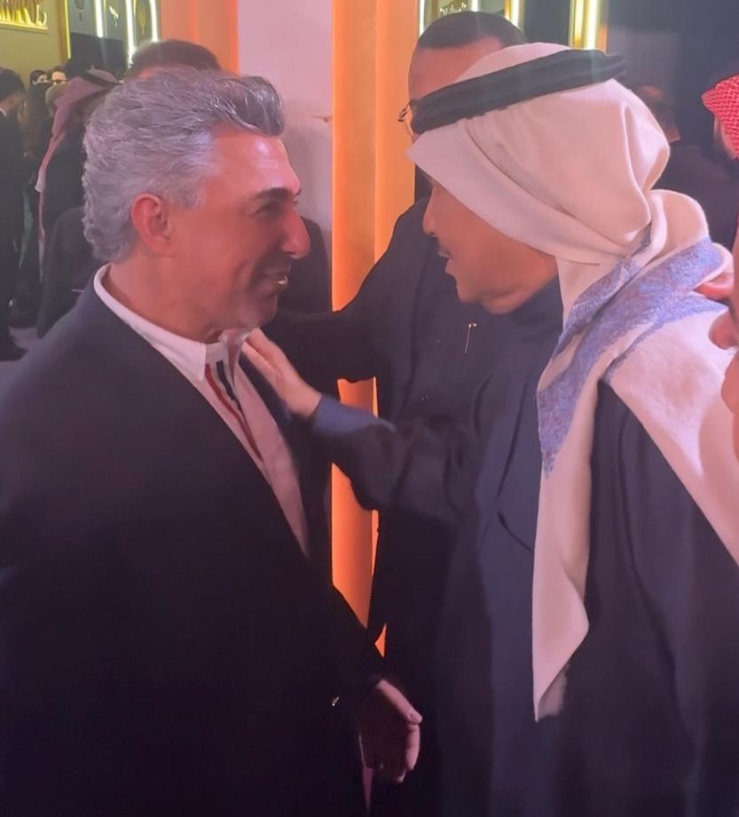 الفنانان عمر العبداللات ومحمد عبده خلال لقائهما في جوي اوورد 2026 يتفقان على التعاون المشترك
